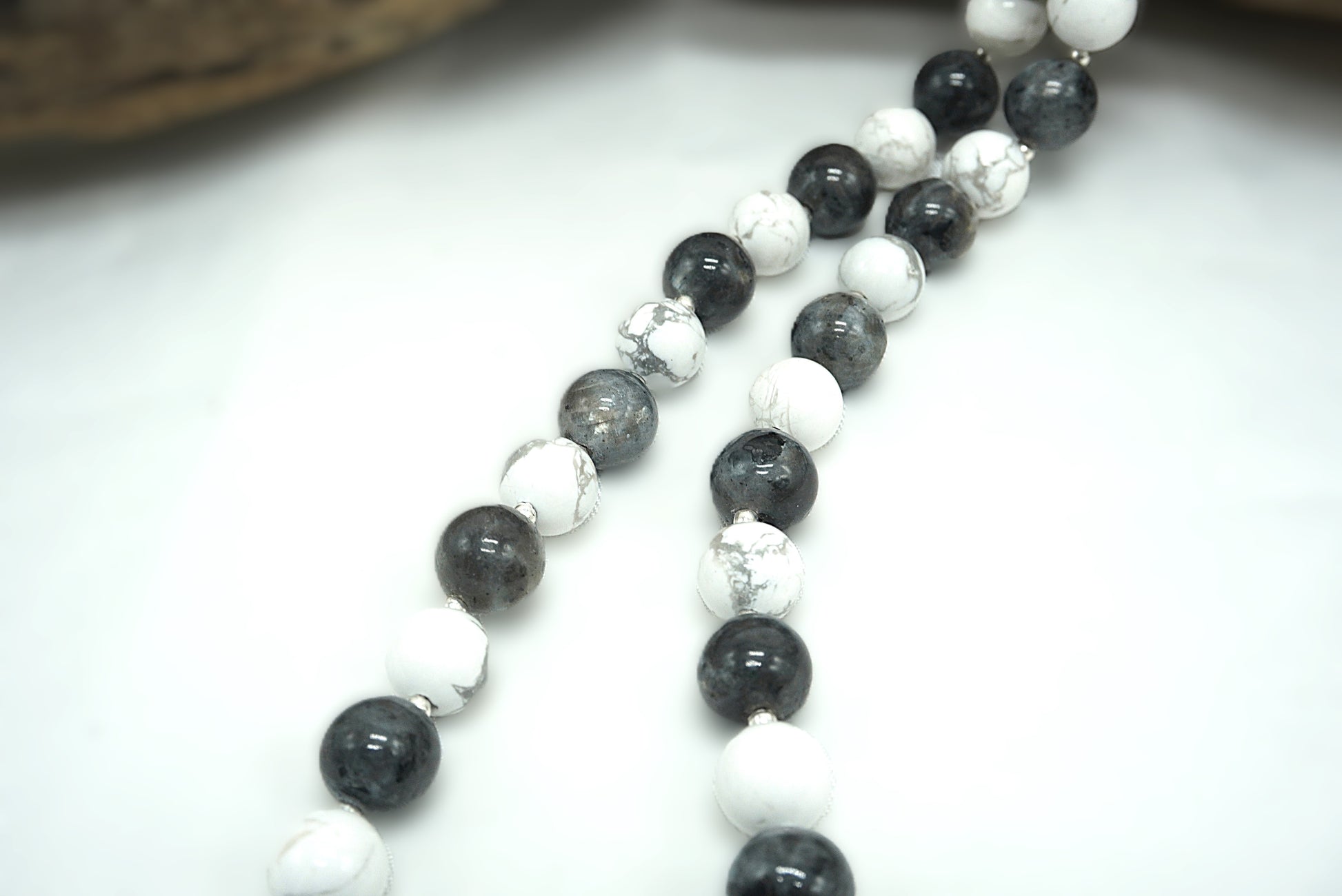 L’inspiration est clairement minérale et naturelle : ce cordon n’est pas qu’un accessoire utilitaire, c’est un objet de présence, qui accompagne le quotidien avec une touche artisanale et sensorielle. Chaque modèle peut présenter de légères variations de teinte et de texture, liées à la nature même des perles.