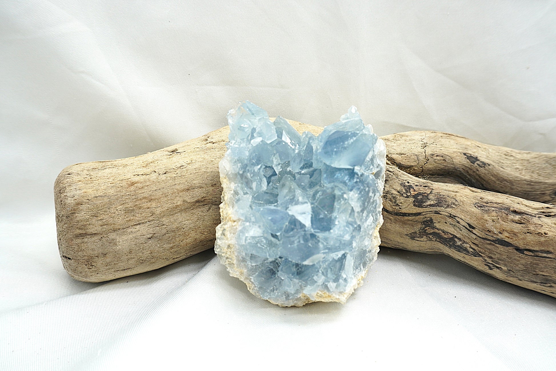 Aujourd’hui encore, la célestine est recherchée pour ses vertus calmantes et sa capacité à nous relier à la douceur de notre essence. Elle est aussi utilisée pour soulager les maux physiques liés à la gorge, aux oreilles ou aux yeux, tout en favorisant une expression sincère et fluide.
