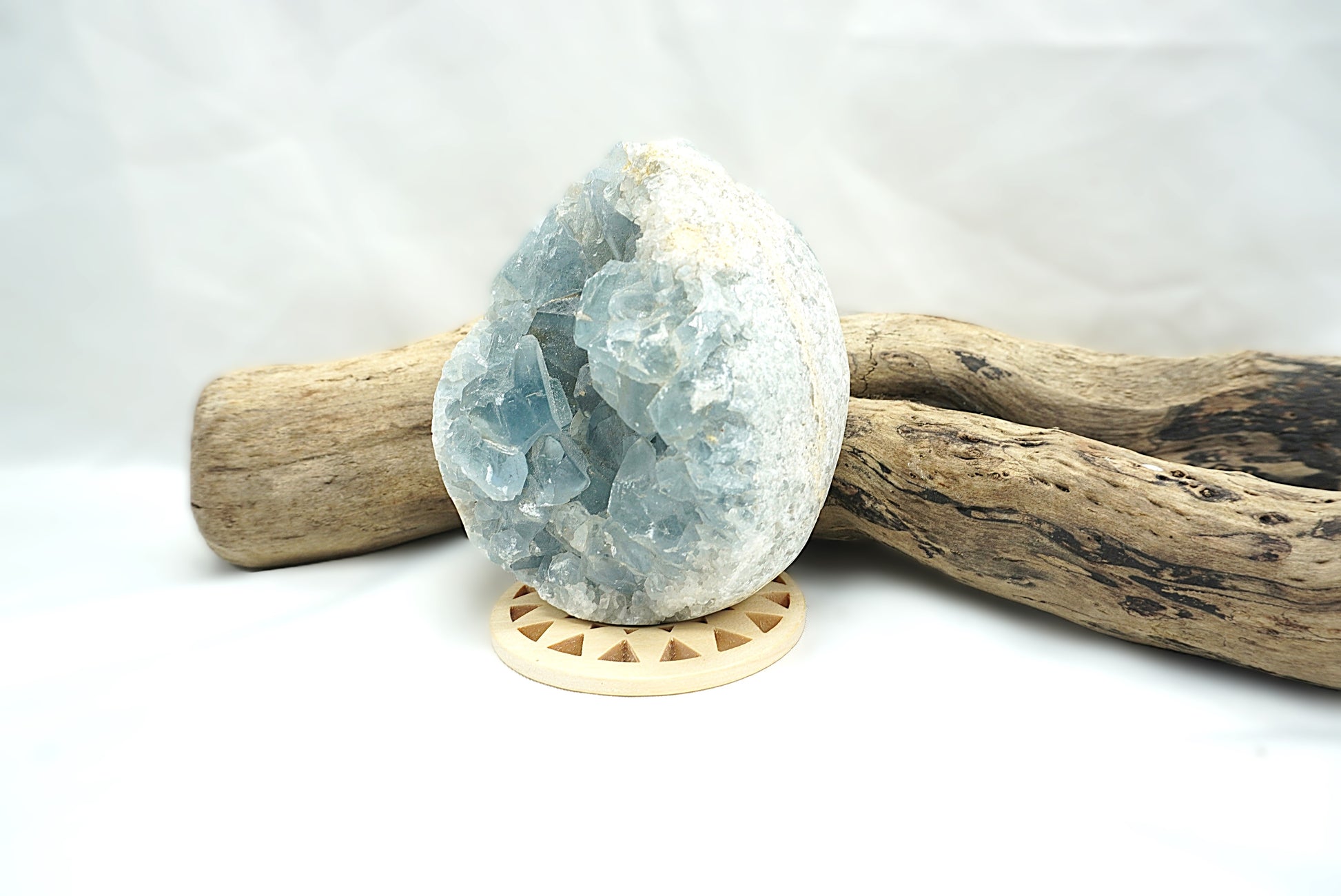 Aujourd’hui encore, la célestine est recherchée pour ses vertus calmantes et sa capacité à nous relier à la douceur de notre essence. Elle est aussi utilisée pour soulager les maux physiques liés à la gorge, aux oreilles ou aux yeux, tout en favorisant une expression sincère et fluide.