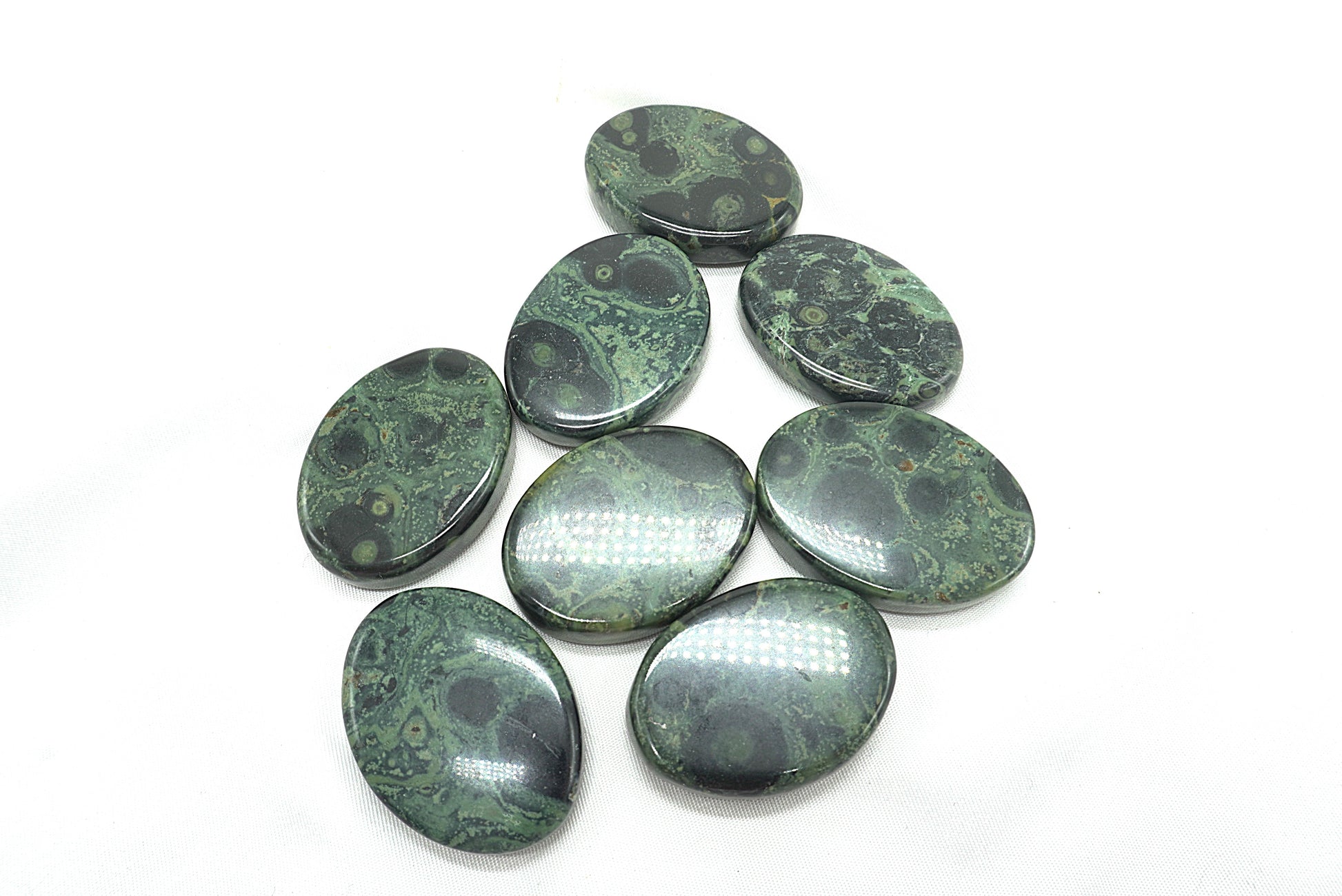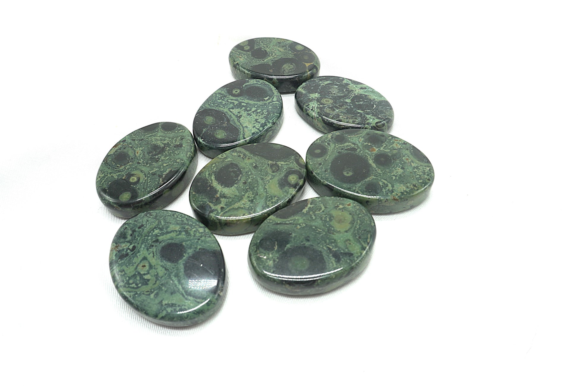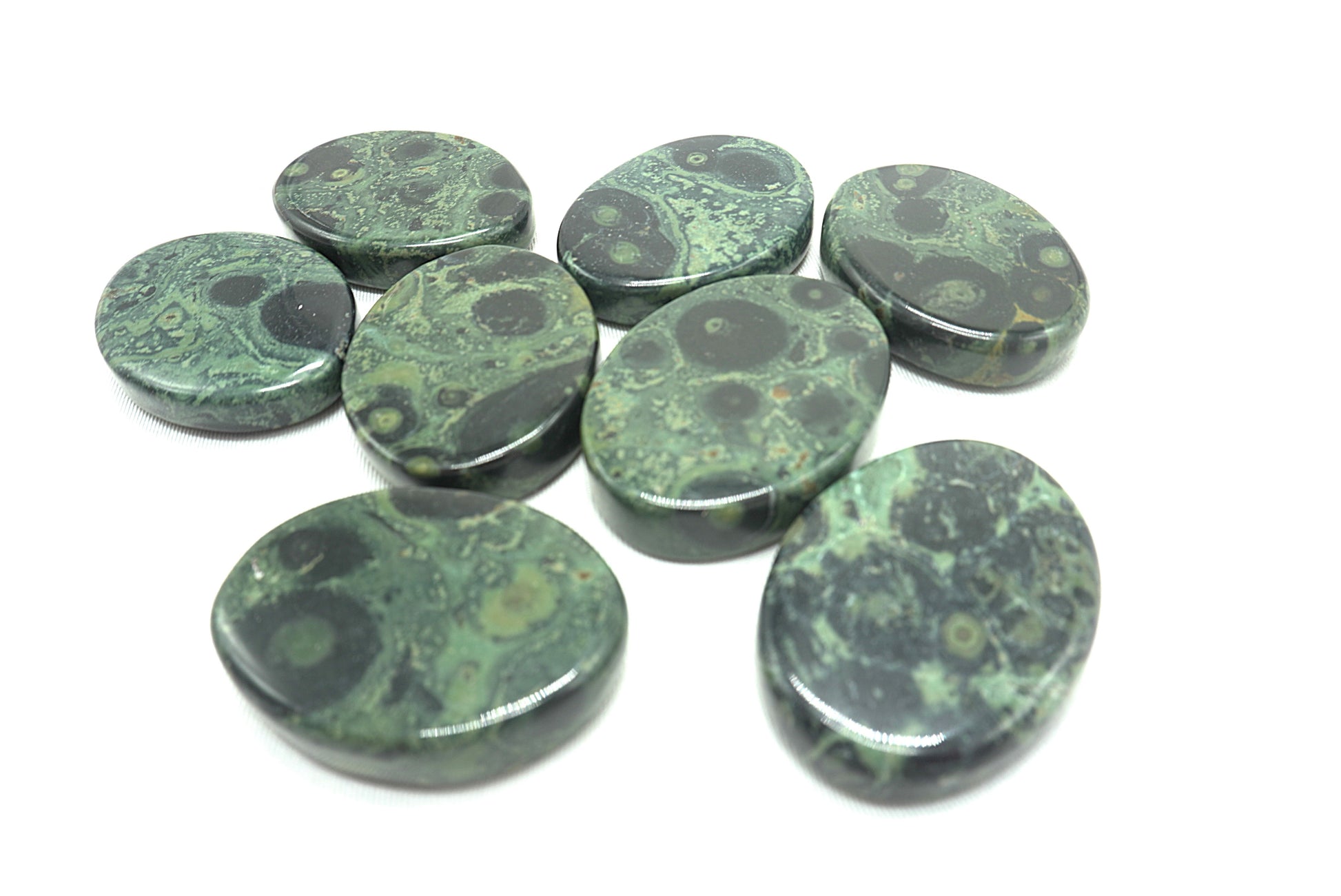 Avec ses cercles verts profonds et ses motifs sombres évoquant la peau d’un crocodile, le jaspe kambaba offre une vibration ancienne et sage, connectée aux origines de la vie, à la mémoire cellulaire, et aux cycles de transformation.