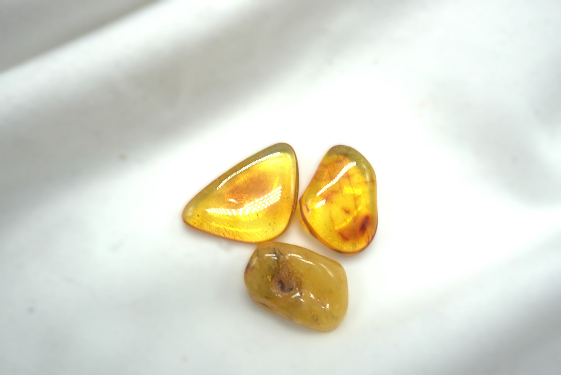 L’ambre n’est pas une pierre au sens strict, mais une résine fossilisée, un éclat figé du temps qui murmure des souvenirs d’arbres anciens et de forêts disparues. Elle porte en elle la mémoire du vivant, capturant parfois dans sa matière dorée des fragments d’insectes, de feuilles, ou de poussières d’éternité. Sa lumière chaude évoque un soleil intérieur, une douceur enveloppante qui réconforte, apaise et réchauffe les zones froides de l’âme.