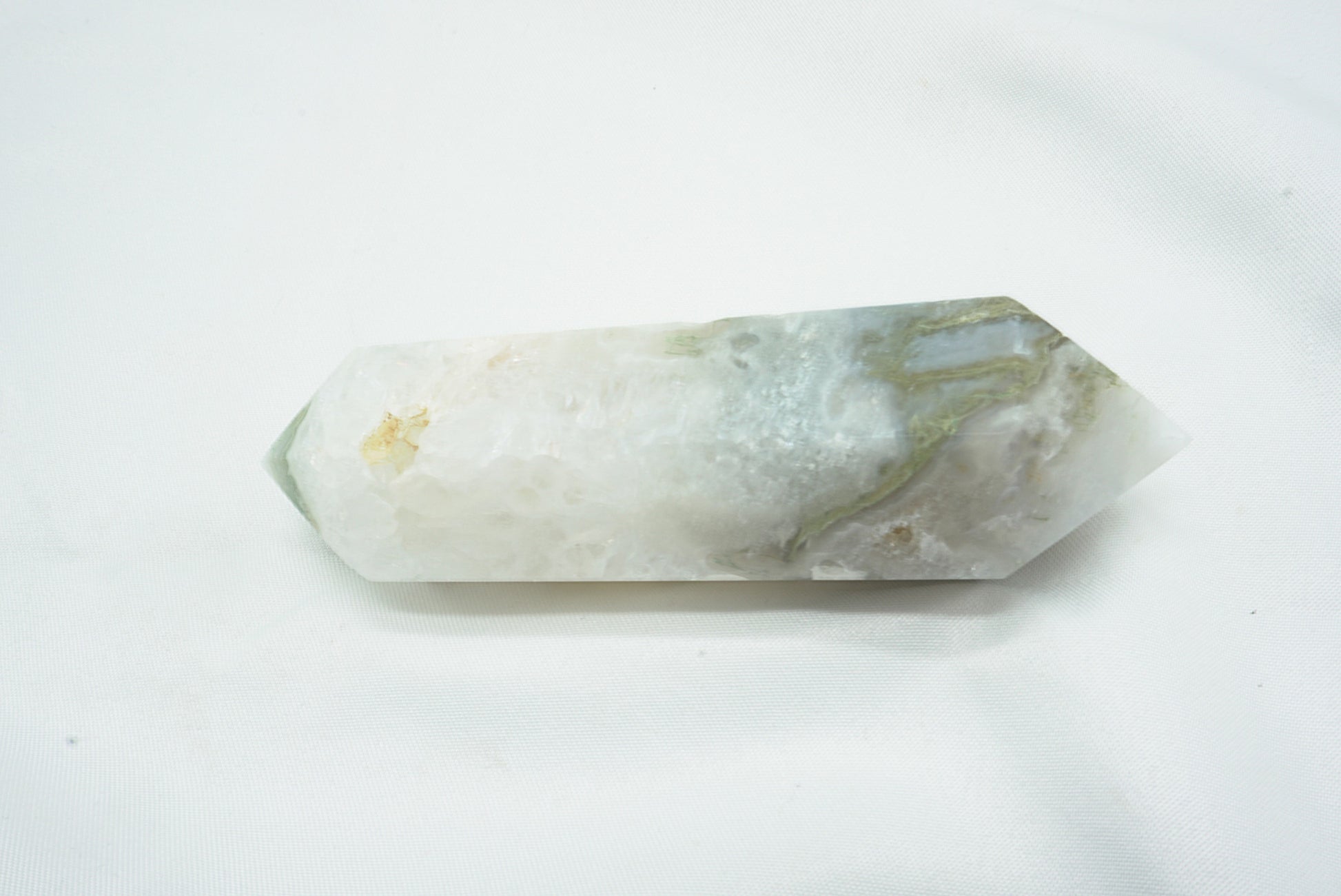 POINTE BI-TERMINEE AGATE MOUSSE ET QUARTZ (100 grammes)